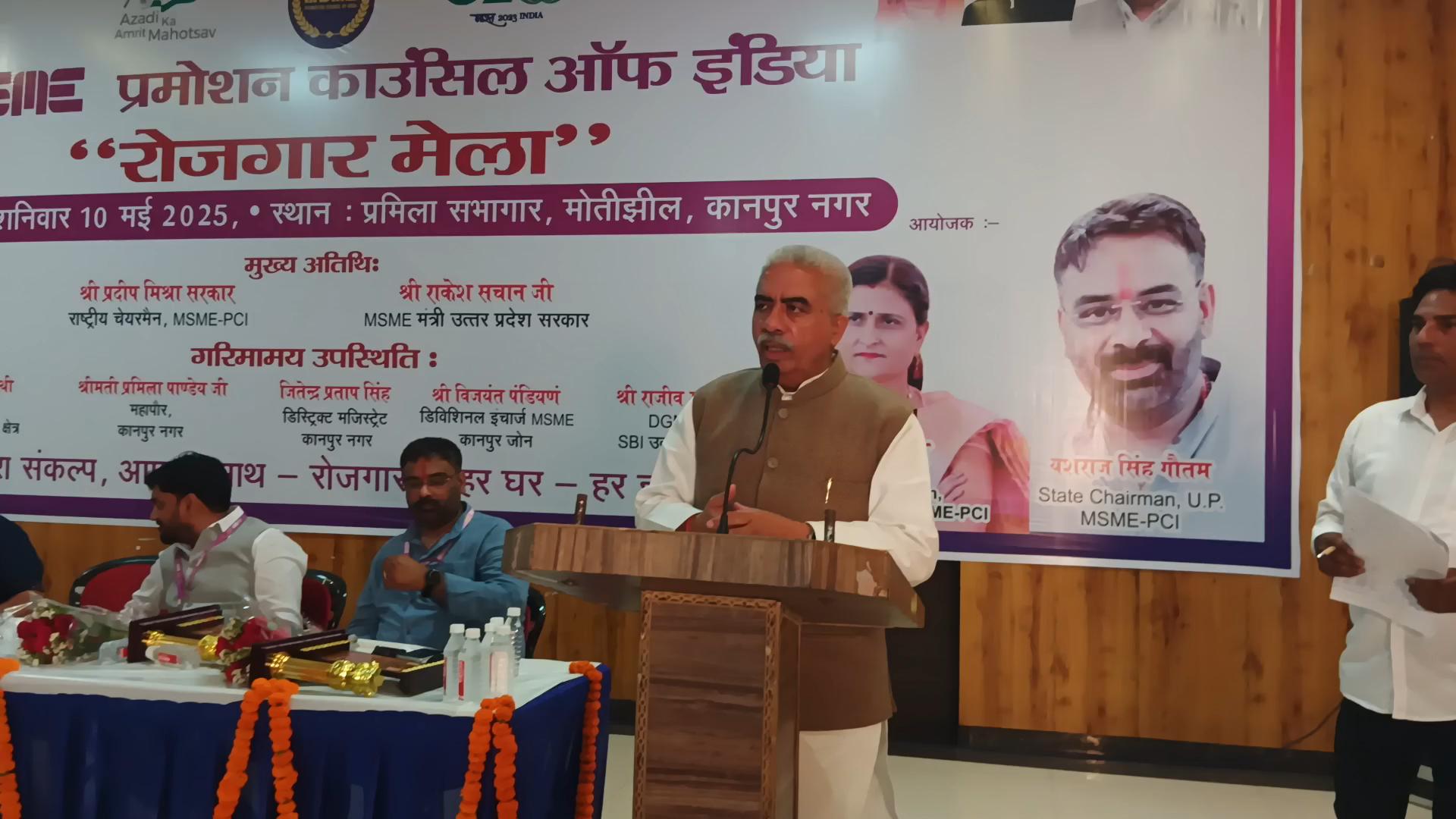 MSME प्रमोशन काउंसिल ऑफ इंडिया (MSME-PCI), बुंदेलखंड,उत्तर प्रदेश के तत्वावधान में शनिवार को प्रमिला सभागार, मोतीझील में एक भव्य "रोजगार मेला" का आयोजन किया गया।युवाओं,उद्यमियों तथा सूक्ष्म, लघु एवं मध्यम उद्योगों के लिए रोजगार और व्यवसाय के नए अवसरों को जोड़ना इसका असल उद्देश्य है। कार्यक्रम का शुभारंभ दोपहर 12:30 बजे हुआ। मुख्य अतिथि के रूप में राकेश सचान (MSME मंत्री, उत्तर प्रदेश सरकार) एवं प्रदीप मिश्रा सरकार (राष्ट्रीय चेयरमैन,MSME-PCI) रमेश अवस्थी (सांसद, कानपुर लोकसभा) एवं प्रमिला पांडेय (महापौर, कानपुर नगर) मौजूद रहीं।